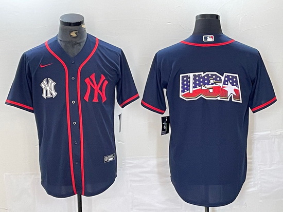 Men New York Yankees Big LOGO Navy Cool Base Stitched Baseball Jersey 33