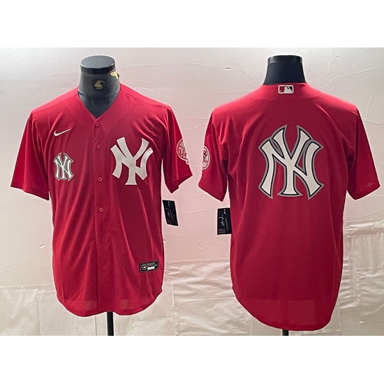 Men New York Yankees Big Logo Red Cool Base Stitched Baseball Jersey 15