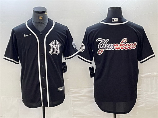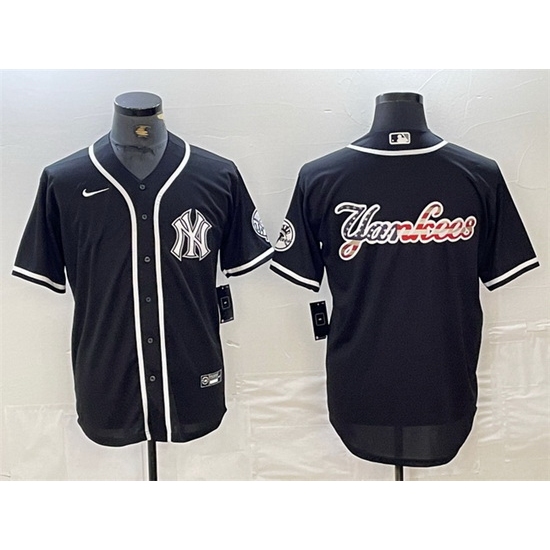 Home>MLB>New York Yankees>Men>Men New York Yankees Black Team Big Logo Cool Base Stitched Baseball Jersey 11