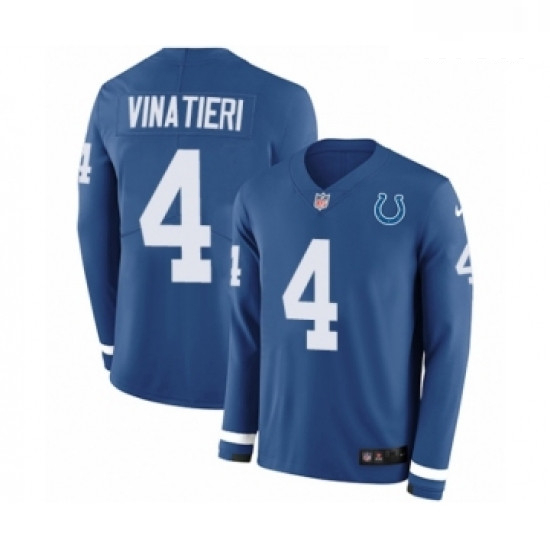 Home>NFL>Indianapolis Colts>Men>Men Nike Indianapolis Colts 4 Adam Vinatieri Limited Blue Therma Long Sleeve NFL Jersey