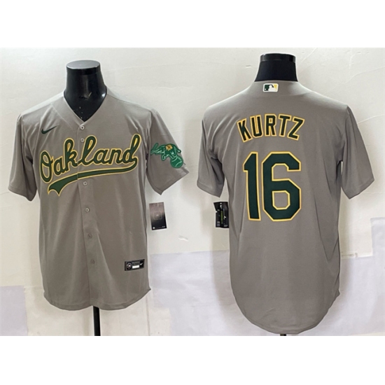 Home>MLB>Oakland Athletics>Men>Men Oakland Athletics 16 Nick Kurtz Grey Cool Base Stitched Baseball Jersey