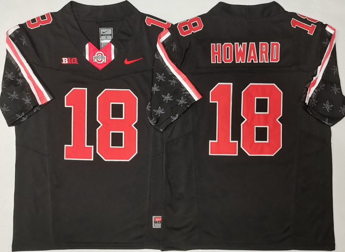 Home>NCAA>Ohio State Buckeyes>Men Ohio State Buckeyes Black #18 Will Howard Black Stitched F U S E NCAA Jersey