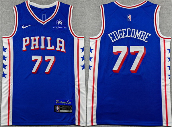Men Philadelphia 76ers 77 V J Edgecombe Royal Icon Edition Stitched Jersey