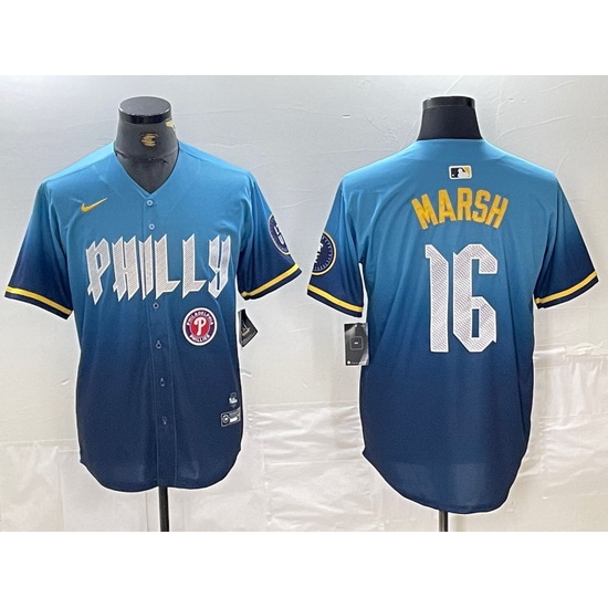 Men Philadelphia Phillies 16 Brandon Marsh Blue 2024 City Connect Limited Stitched Jersey 3
