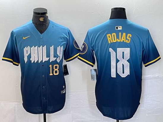 Home>MLB>Philadelphia Phillies>Men>Men Philadelphia Phillies 18 Johan Rojas Blue 2024 City Connect Limited Stitched Jersey 2
