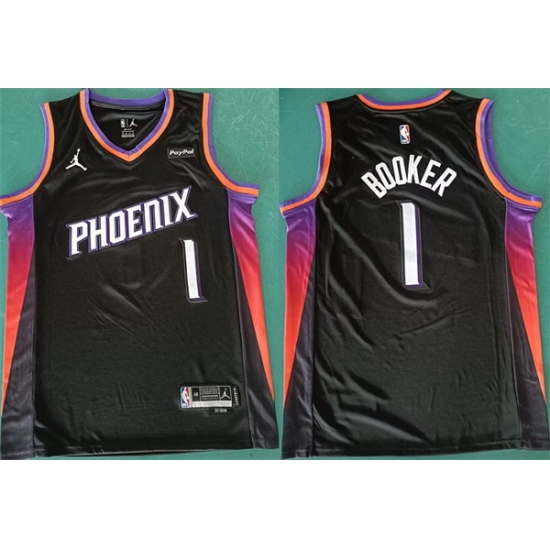 Home>NBA>Phoenix Suns>Men>Men Phoenix Suns 1 Devin Booker Black 2025 Statement Edition Stitched Basketball Jersey
