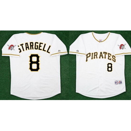 Men Pittsburgh Pirates 8 Willie Stargell White Team Patch Stitched Jersey