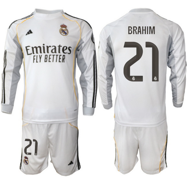 Men Real Madrid 2026 Soccer Jerseys White Long #21 BRAHIM