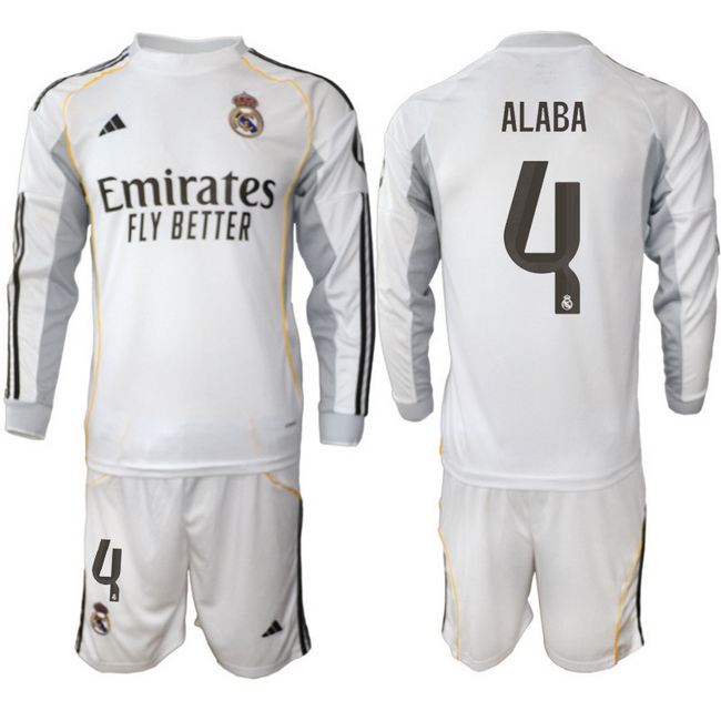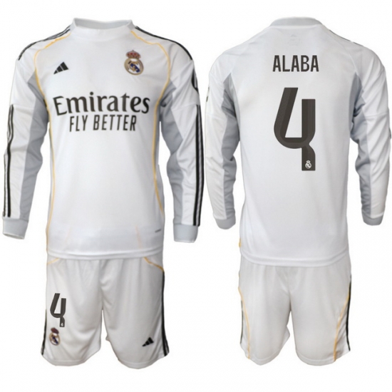 Men Real Madrid 2026 Soccer Jerseys White Long #4 ALABA