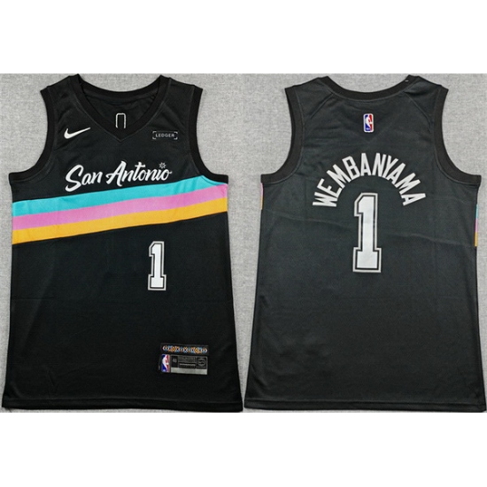 Men San Antonio Spurs 1 Victor Wembanyama Black 2025 26 City Edition Stitched Basketball Jersey