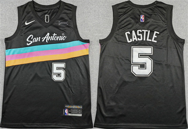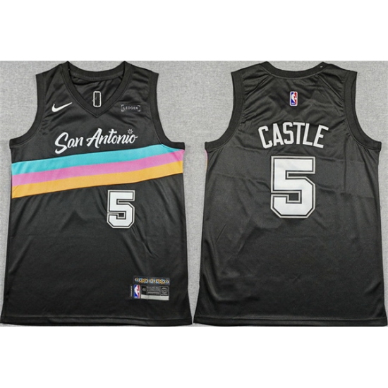 Home>NBA>San Antonio Spurs>Men>Men San Antonio Spurs 5 Stephon Castle Black 2025 26 City Edition Stitched Basketball Jersey