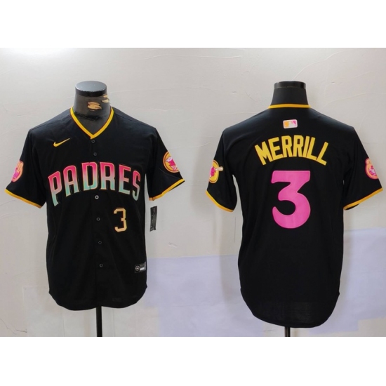 Men San Diego Padres 3 Jackson Merrill Black Cool Base Stitched Baseball Jersey 012