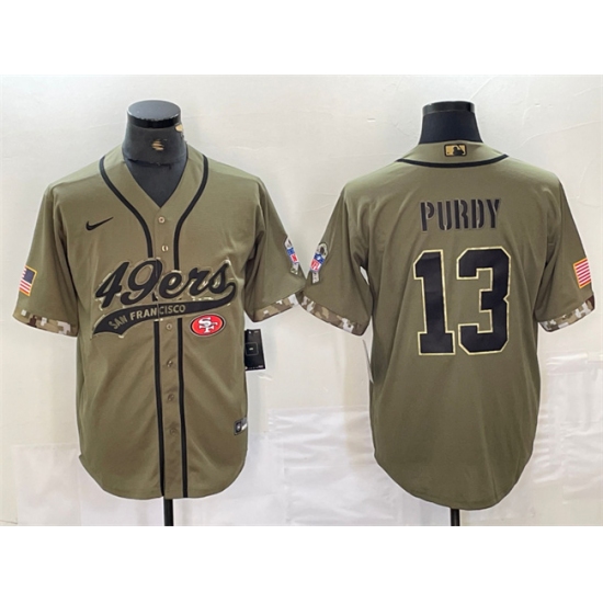 Home>NFL>San Francisco 49ers>Men>Men San Francisco 49ers 13 Brock Purdy Olive Salute To Service With Patch Cool Base Stitched Baseball Jersey