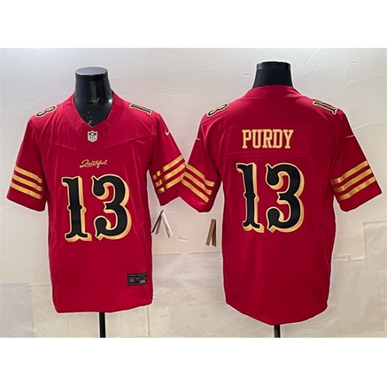 Home>NFL>San Francisco 49ers>Men>Men San Francisco 49ers 13 Brock Purdy Red Gold 2025 F U S E Rivalries Vapor Limited Stitched Football Jersey