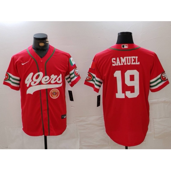 Men San Francisco 49ers 19 Deebo Samuel Red With Patch Cool Base Stitched Baseball Jersey 3
