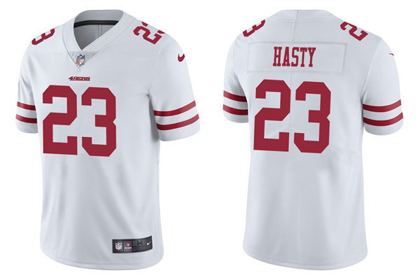 Men San Francisco 49ers 23 JaMycal Hasty 2021 White Vapor Untouchable Limited Stitched Jersey