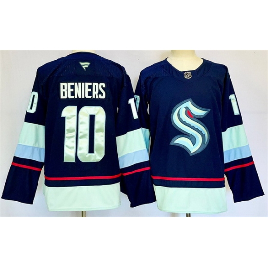 Men Seattle Kraken 10 Matty Beniers Navy 2024 25 Home Stitched Hockey Jersey