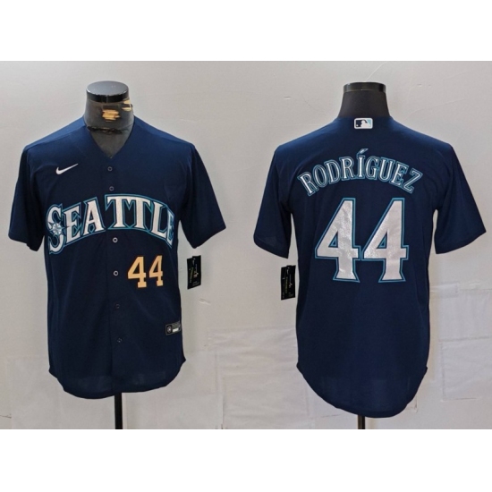 Men Seattle Mariners 44 Julio Rodr EDguez Navy Cool Base Stitched Jersey 1