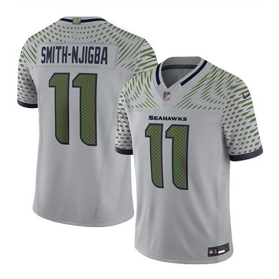 Home>NFL>Seattle Seahawks>Men>Men Seattle Seahawks 11 Jaxon Smith Njigba Grey 2025 F U S E Rivalries Vapor Untouchable Limited Stitched Football Jersey