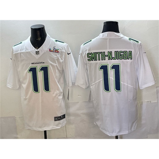 Men Seattle Seahawks 11 Jaxon Smith Njigba White 2025 Super Bowl LX Patch Tundra Fashion Vapor Untouchable Limited Stitched Football Jersey