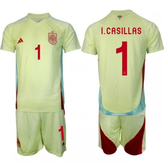 Men Spain Team 1 Iker Casillas 2024 25 Yellow Away Soccer Jersey Suit