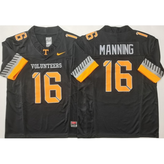 Men Tennessee Volunteers Black #16 Peyton Manning White F U S E Stitched NCAA Jersey