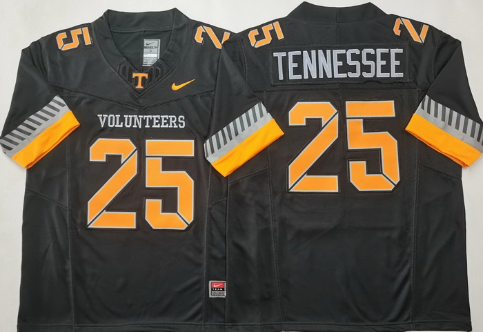 Men Tennessee Volunteers Black #25 Anthracite Tennessee White F U S E Stitched NCAA Jersey