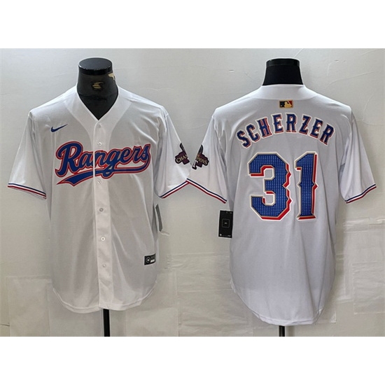 Men Texas Rangers 31 Max Scherzer White Gold Cool Base Stitched Baseball Jersey
