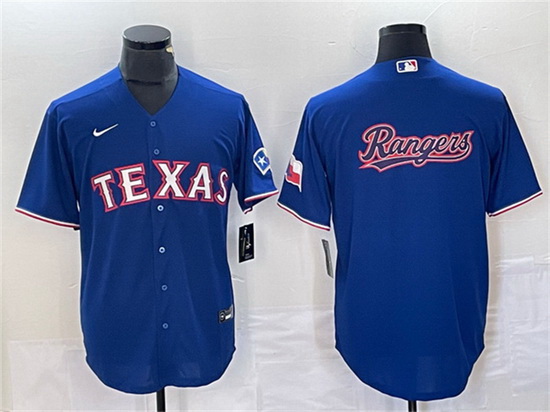 Men Texas Rangers Royal Team Big Logo With Patch Cool Base Stitched Baseball Jersey