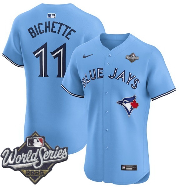 Home>MLB>2025 World Series>Toronto Blue Jays>Men Toronto Blue Jays 11 Bo Bichette Light Blue Cool Base Stitched Baseball Jersey