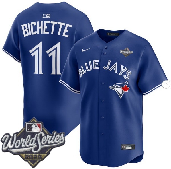 Home>MLB>2025 World Series>Toronto Blue Jays>Men Toronto Blue Jays 11 Bo Bichette Royal Cool Base Stitched Baseball Jersey