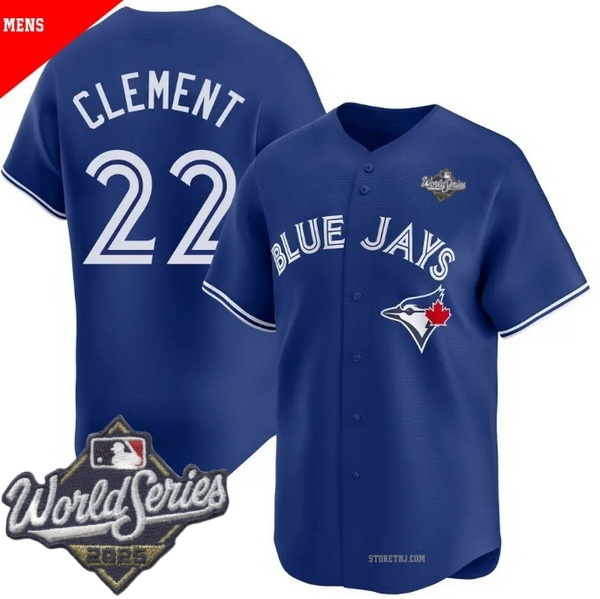 Home>MLB>2025 World Series>Toronto Blue Jays>Men Toronto Blue Jays 22 Ernie Clement Royal Cool Base Stitched Baseball Jersey