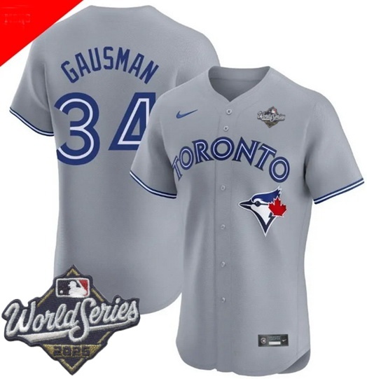 Home>MLB>2025 World Series>Toronto Blue Jays>Men Toronto Blue Jays 34 Kevin Gausman Gray Cool Base Stitched Baseball Jersey