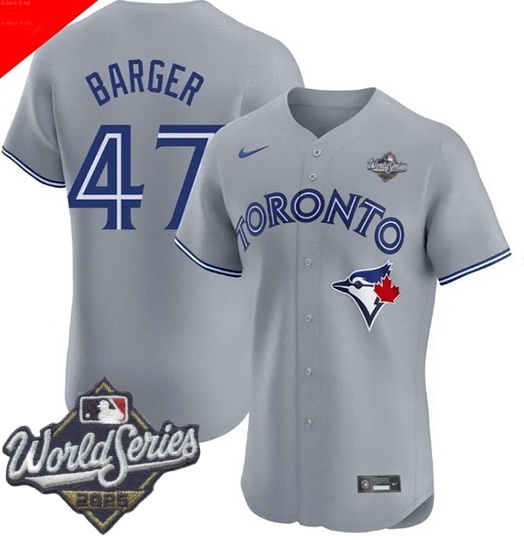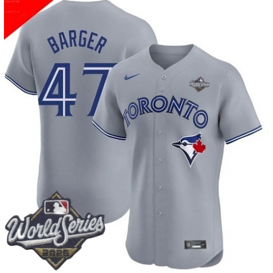 Home>MLB>2025 World Series>Toronto Blue Jays>Men Toronto Blue Jays 47 Addison Barger Cool Base Stitched Baseball Jersey Gray