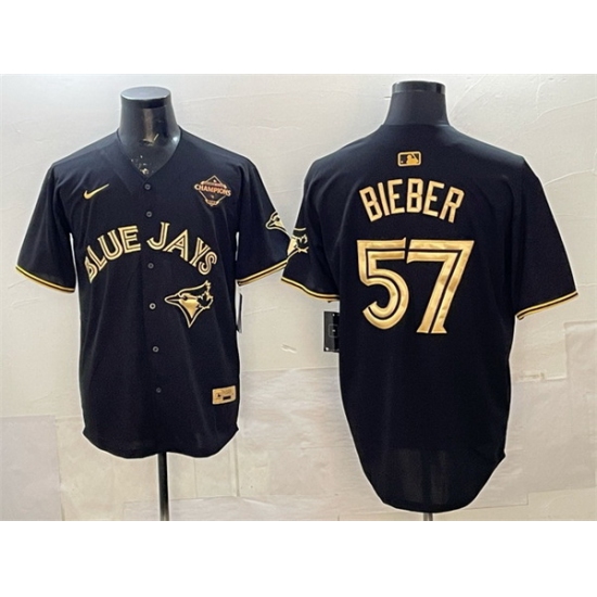 Home>MLB>Toronto Blue Jays>Men>Men Toronto Blue Jays 57 Shane Bieber Black Gold 2025 American League Champions Limited Stitched Baseball Jersey