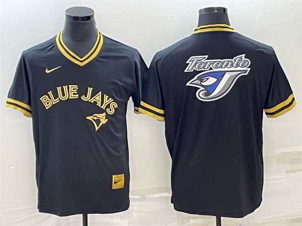 Men Toronto Blue Jays Black Gold Team Big Logo Cool Base Stitched Baseball Jersey