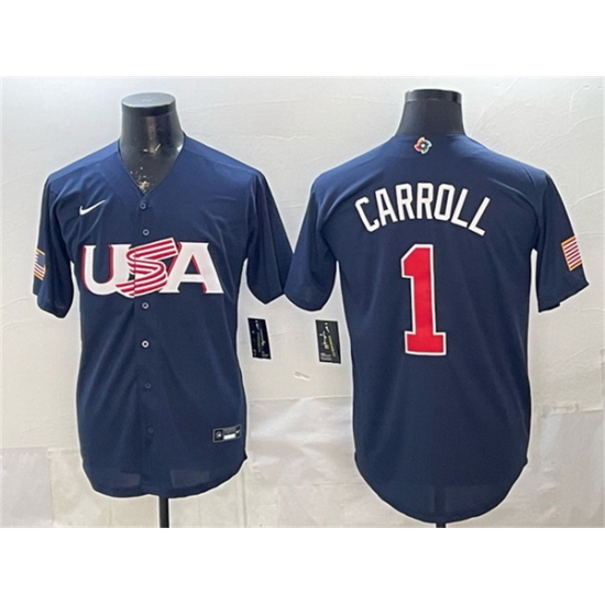 Men USA Baseball 1 Corbin Carroll Navy World Baseball Classic Stitched Jersey