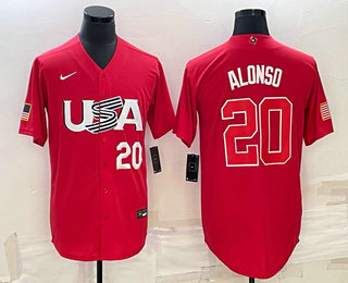 Men USA Baseball #20 Pete Alonso Number 2023 Red World Classic Stitched Jersey 2
