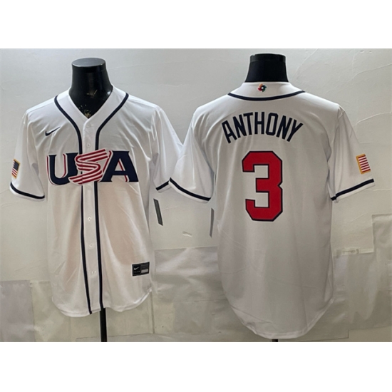 Home>MLB>2026 World Baseball>USA>Men USA Baseball 3 Roman Anthony White 2026 World Baseball Classic Home Stadium Stitched Jersey
