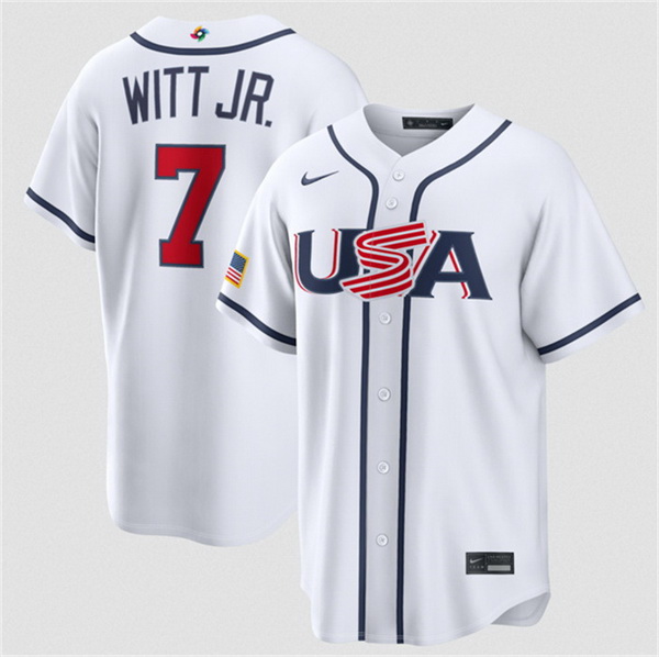 Home>MLB>2026 World Baseball>USA>Men USA Baseball 7 Bobby Witt Jr White 2026 World Baseball Classic Home Stadium Stitched Jersey