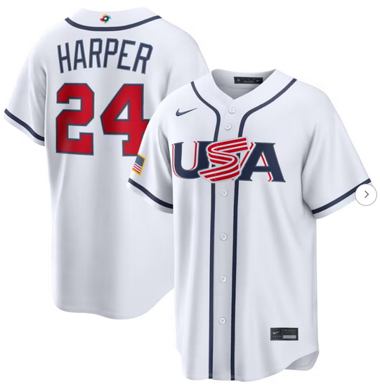 Men USA Baseball Bryce Harper Nike White 2026 World Baseball Classic Home Stadium Jersey