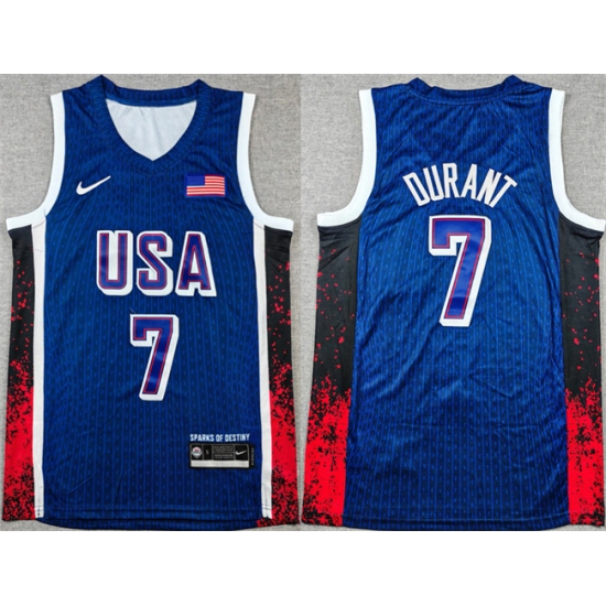 Men USA Basketball 7 Kevin Durant Navy 2024 Olympics Stitched Jersey