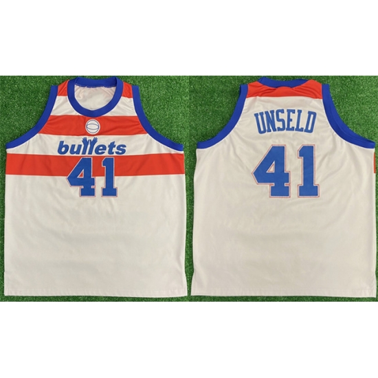 Men Washington Bullets 41 Wes Unseld White Stitched Basketball Jersey