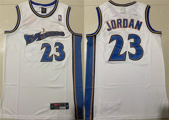 Men Washington Wizards 23 Michael Jordan White Throwback Stitched Jersey