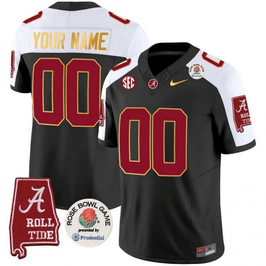 Men Women Youth Alabama Crimson Tide Rose Bowl Patch Gold Trim Vapor Limited Custom Jersey All Stitched Black Aternate