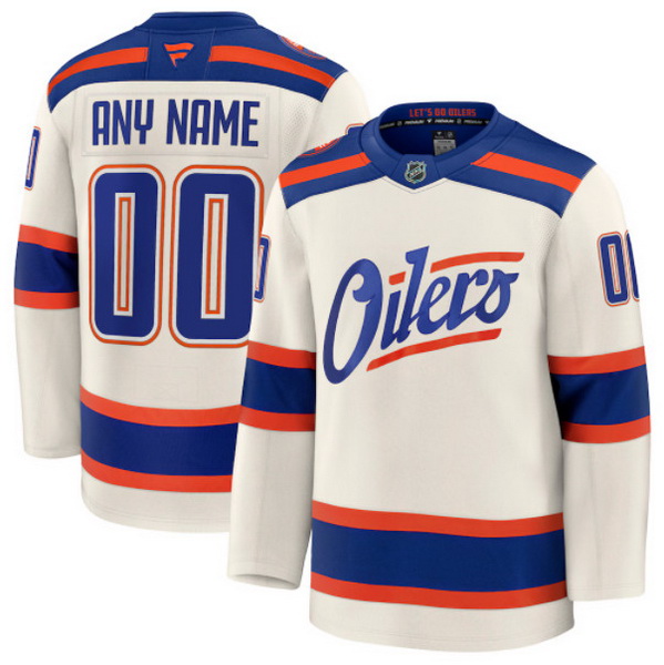 Men Women Youth Edmonton Oilers Fanatics Alternate Premium Custom Jersey Light Beige