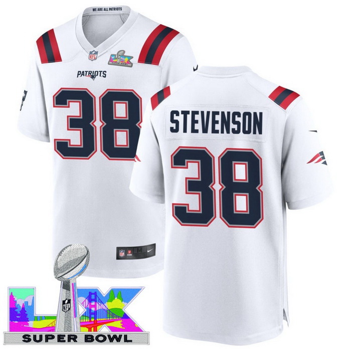 Home>NFL>2025 2026 Super Bowl LX>New England Patriots>Men Women youth New England Patriots #38 Rhamondre Stevenson 2025 2026 Super Bowl LX F U S E Stitched NFL Jersey White