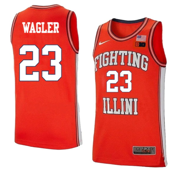 Men's #23 Keaton Wagler Illinois Fighting Illini College Basketball Jersey Orange