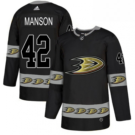 Home>NHL>Anaheim Ducks>Men>Mens Adidas Anaheim Ducks 42 Josh Manson Premier Black Team Logo Fashion NHL Jersey