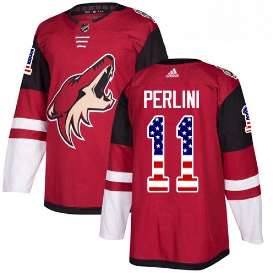 Home>NHL>Arizona Coyotes>Men>Mens Adidas Arizona Coyotes 11 Brendan Perlini Authentic Red USA Flag Fashion NHL Jersey